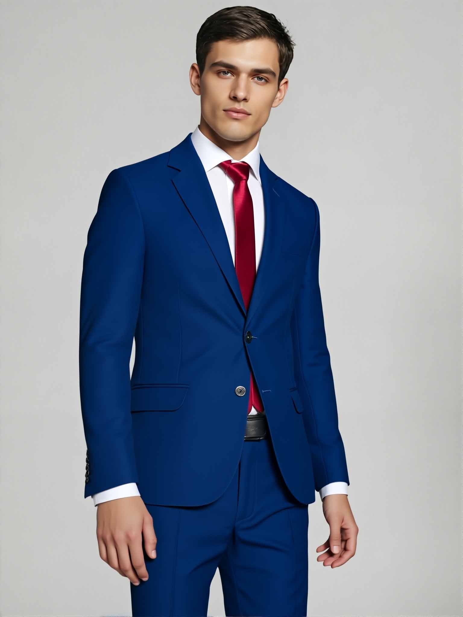 Ambo Slim Fit confeccionado en cotón satén azul, con acabado brillante, excelente caída y estilo sofisticado. Ideal para bodas, fiestas y eventos especiales donde buscás destacar con elegancia y personalidad.