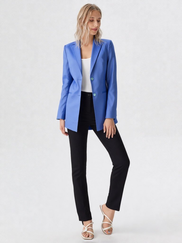 Detalles que Enamoran: Solapas de muesca clásicas, botones a tono y un largo ideal que estiliza la figura mientras proporciona esa cobertura extra que muchas buscan.