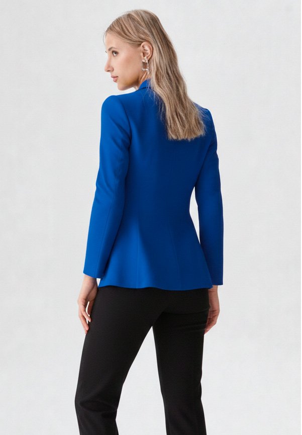 Atrévete a destacar. Deja atrás los colores aburridos y dale a tu imagen el impacto que se merece. El azulino es el color de la temporada para mujeres que no temen ser vistas. ¡Elige tu talle y llevate el blazer que hablará por vos!