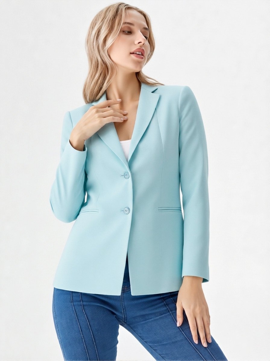 Renová tu energía. El celeste es el color de las mentes creativas y decididas. No dejes pasar la oportunidad de sumar este soplo de aire fresco a tu colección personal. ¡Seleccioná tu talle y asegurá tu blazer celeste antes de que vuele!