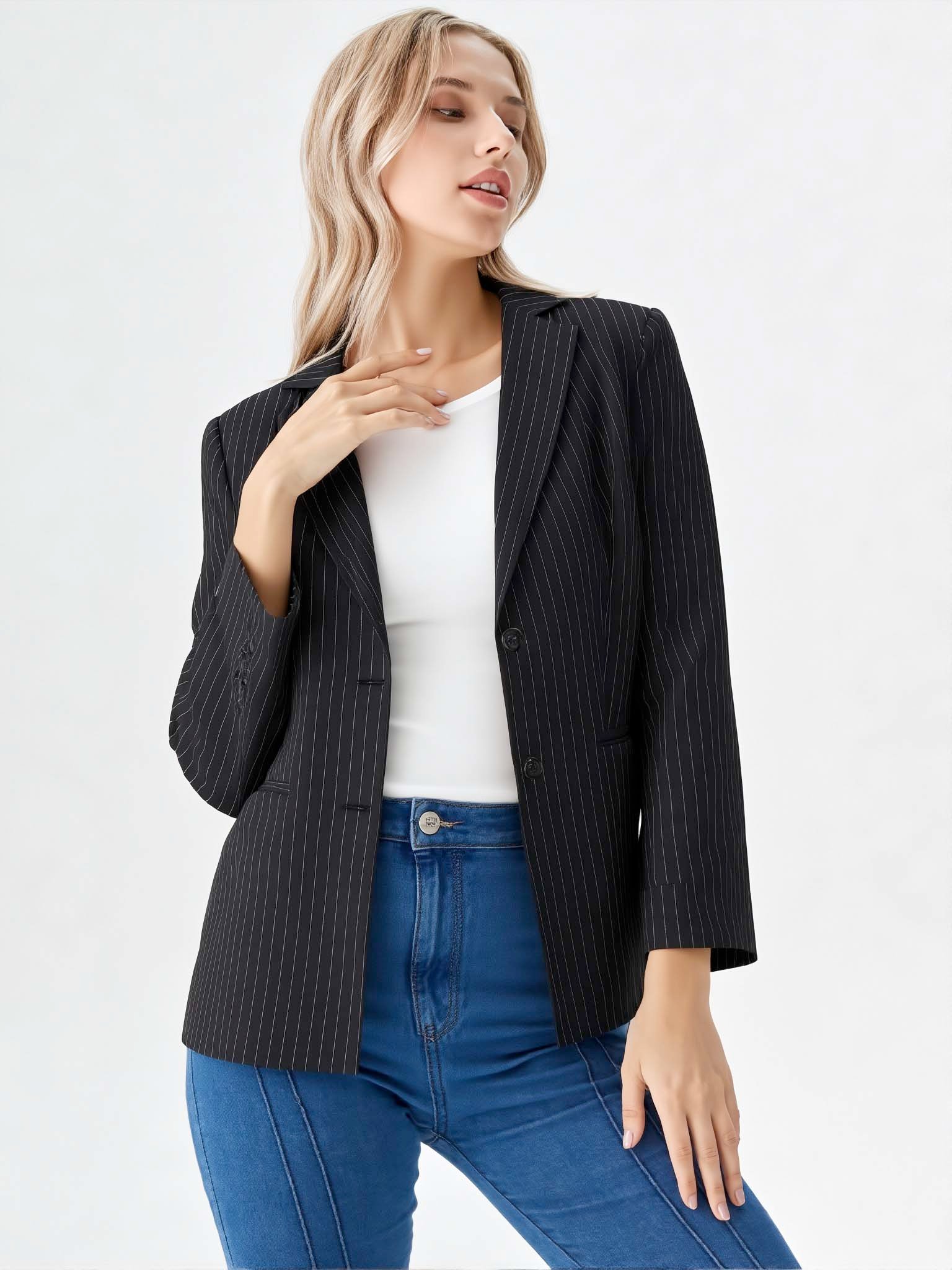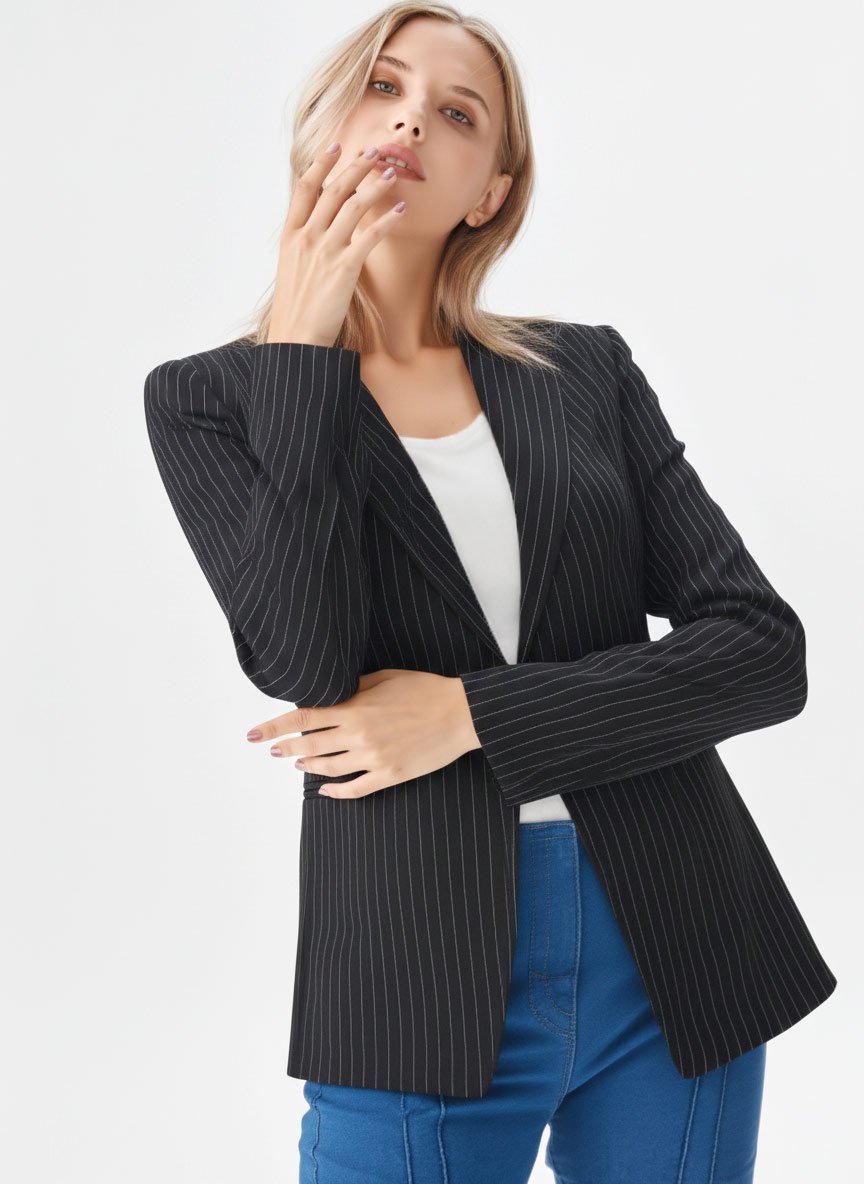 Blazer Oversize Negro con Rayas – La Definición del Power Dressing Moderno