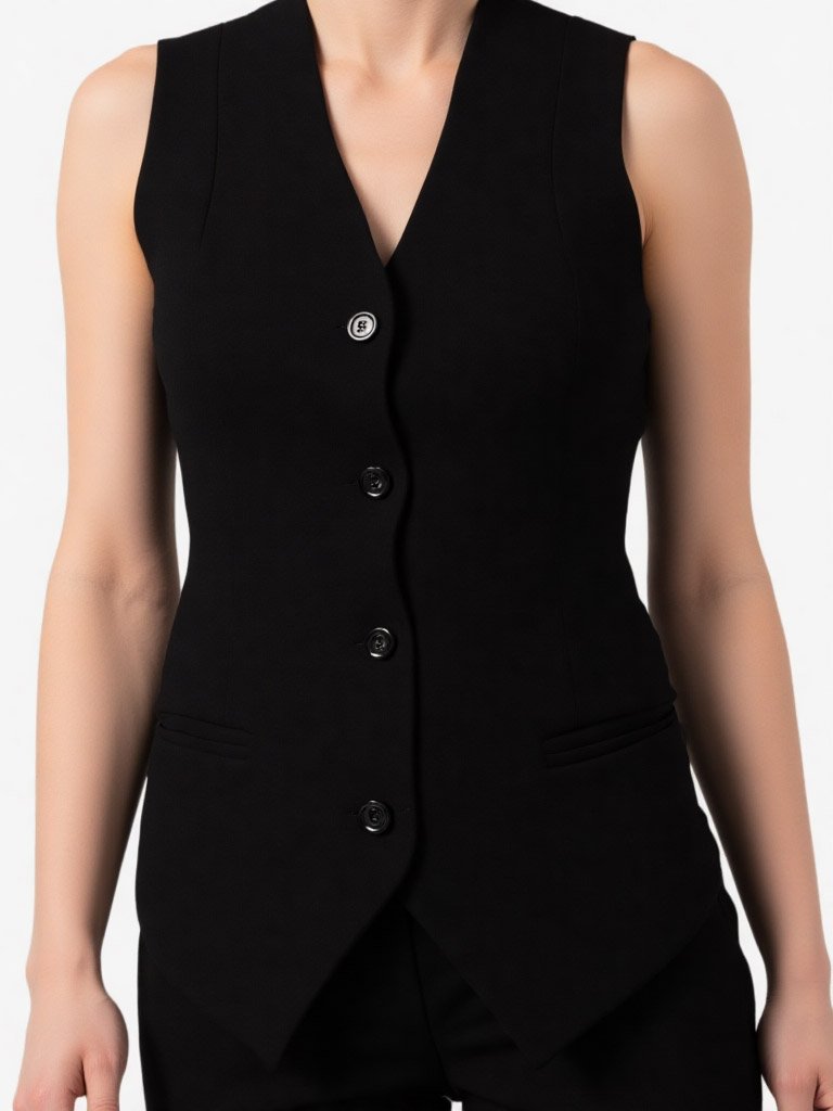 Nuestro chaleco negro de corte profesional ha sido confeccionado con estándares de alta sastreria, ofreciendo una estructura que estiliza la figura y aporta una sofisticación instantánea. Ya sea para una reunión de negocios crucial o para elevar un look casual con jeans, esta prenda resuelve el dilema de «¿qué me pongo?» en segundos.