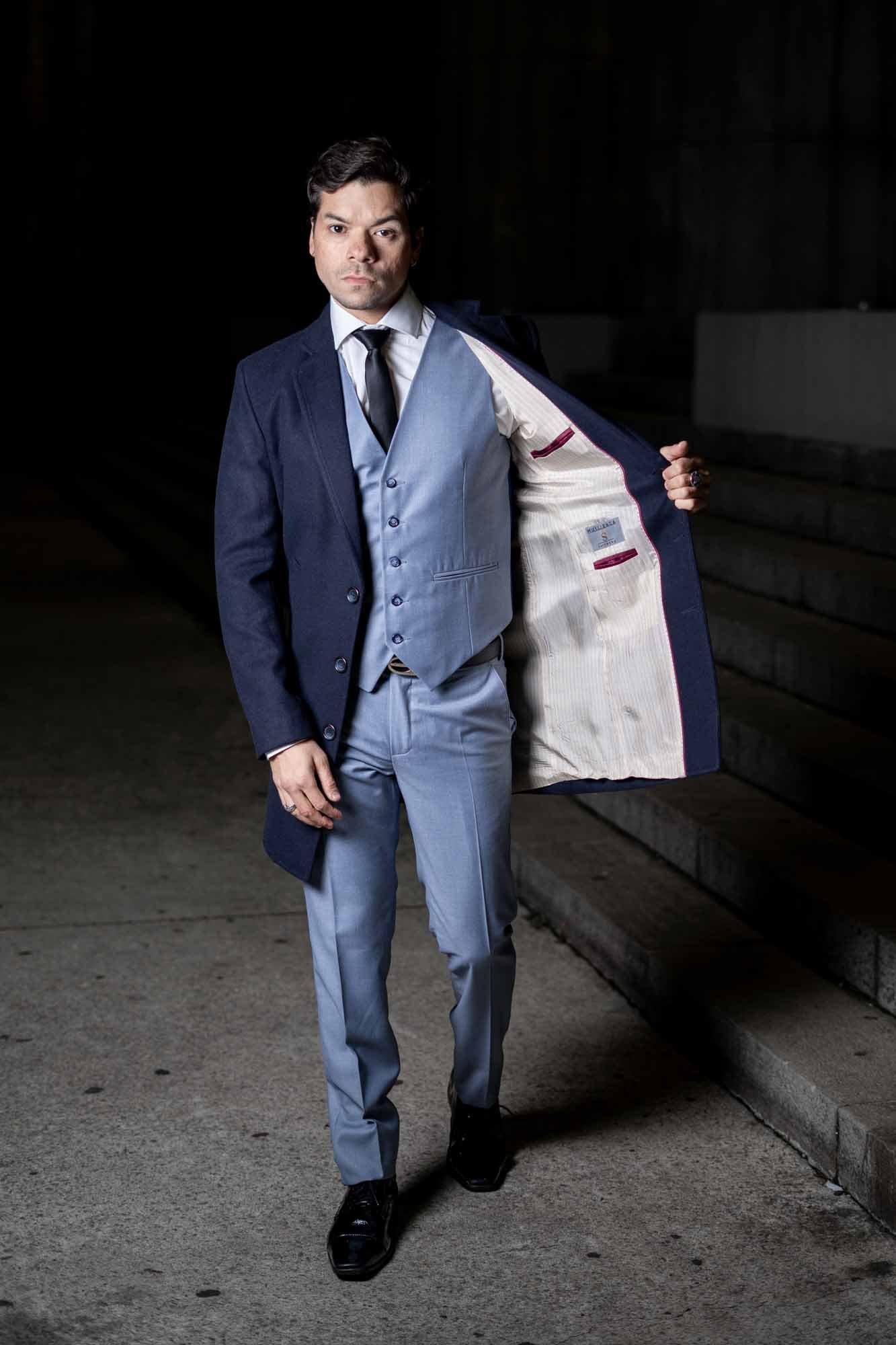 Detalles de Confección: Bolsillos laterales funcionales, hombros bien definidos y costuras de precisión que aseguran una silueta impecable. El diseño permite llevar trajes completos debajo sin perder la forma ni comprometer el estilo. Las solapas anchas aportan un toque distintivo y elegante.