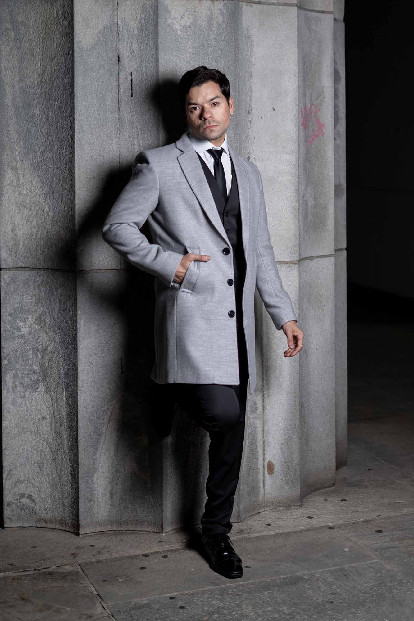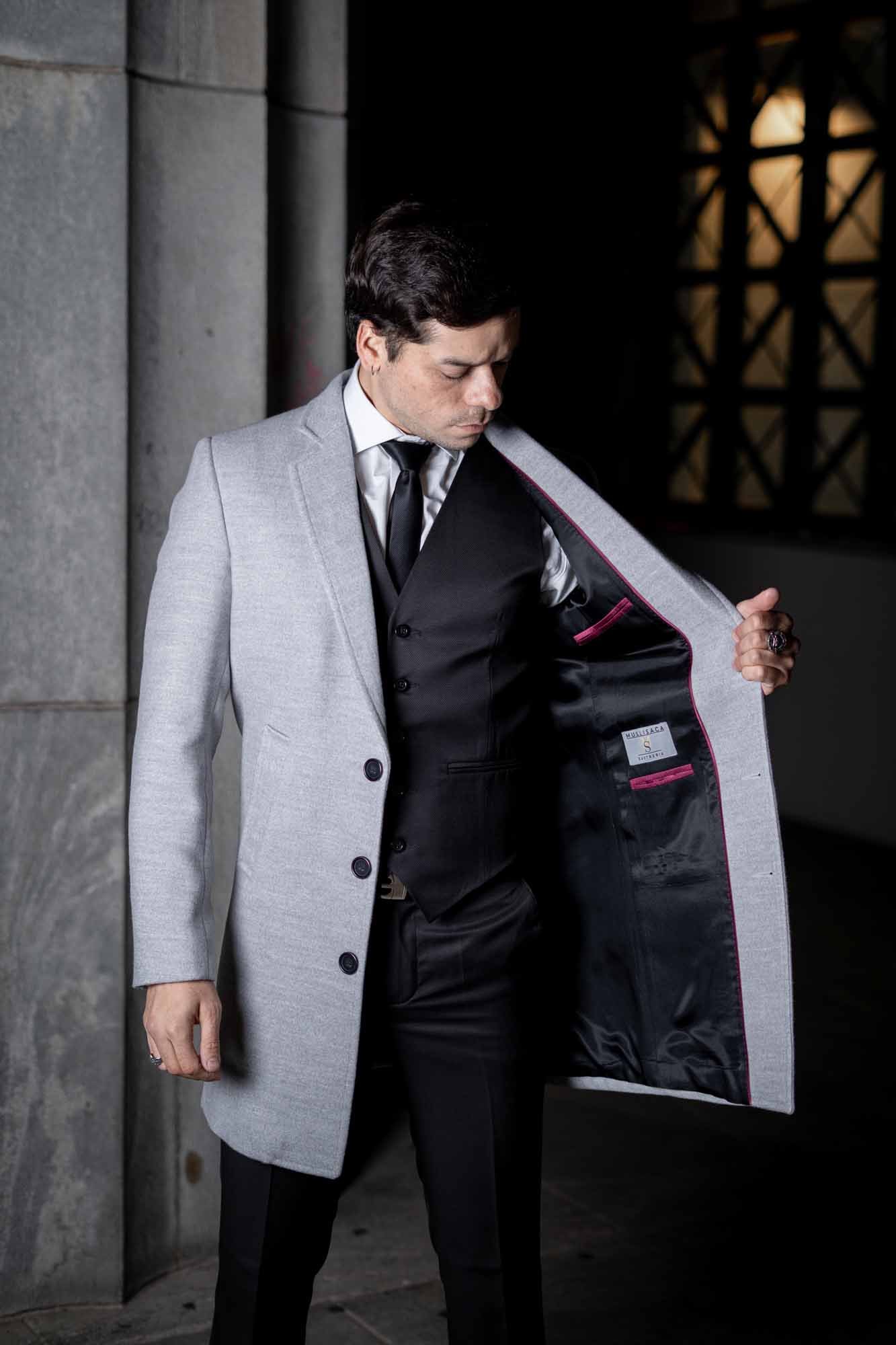 Eleva tu estilo invernal con este sofisticado tapado de vestir para hombre en gris claro, la prenda esencial para el caballero moderno que busca distinción y protección con máxima elegancia durante la temporada fría.