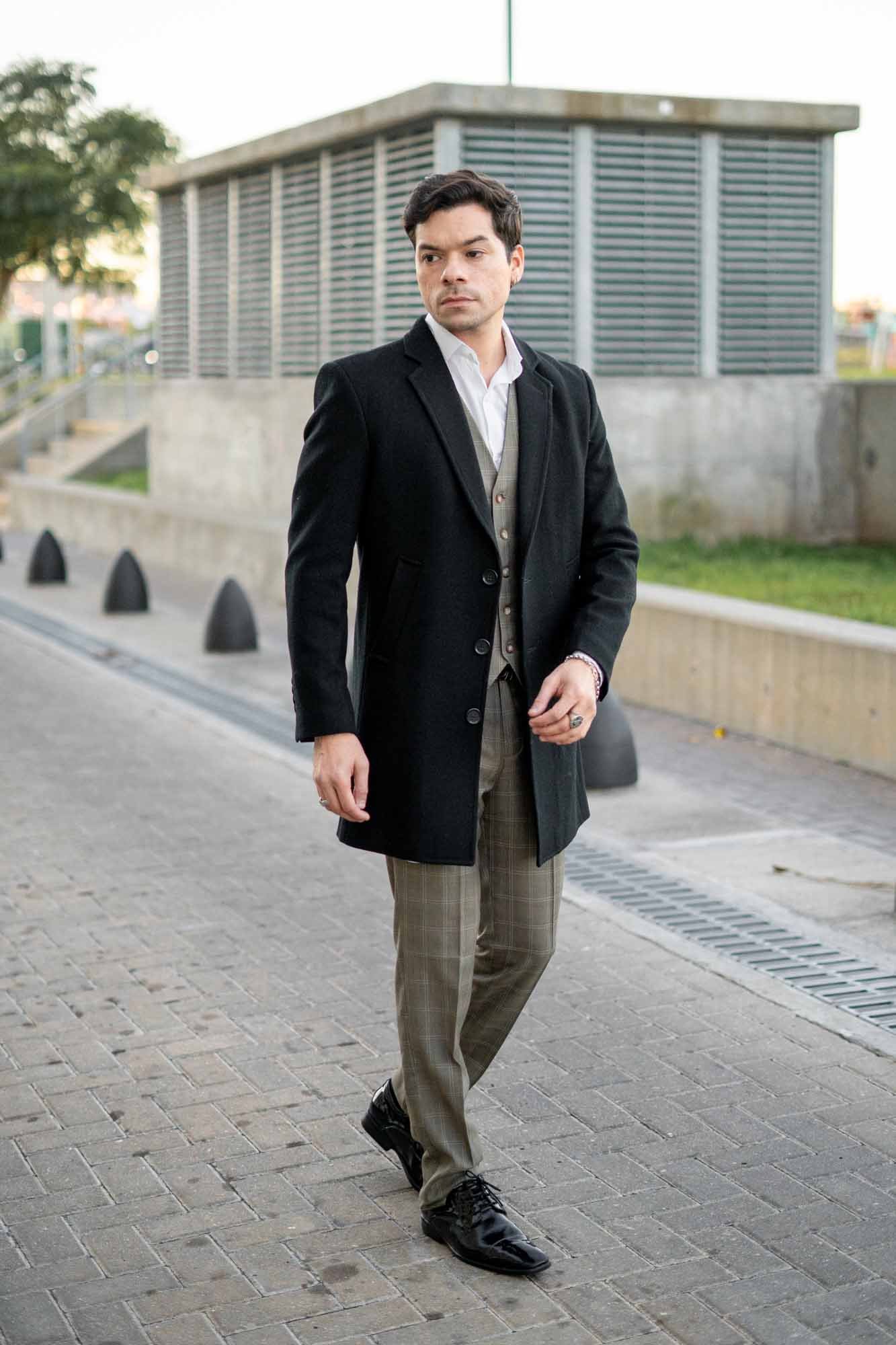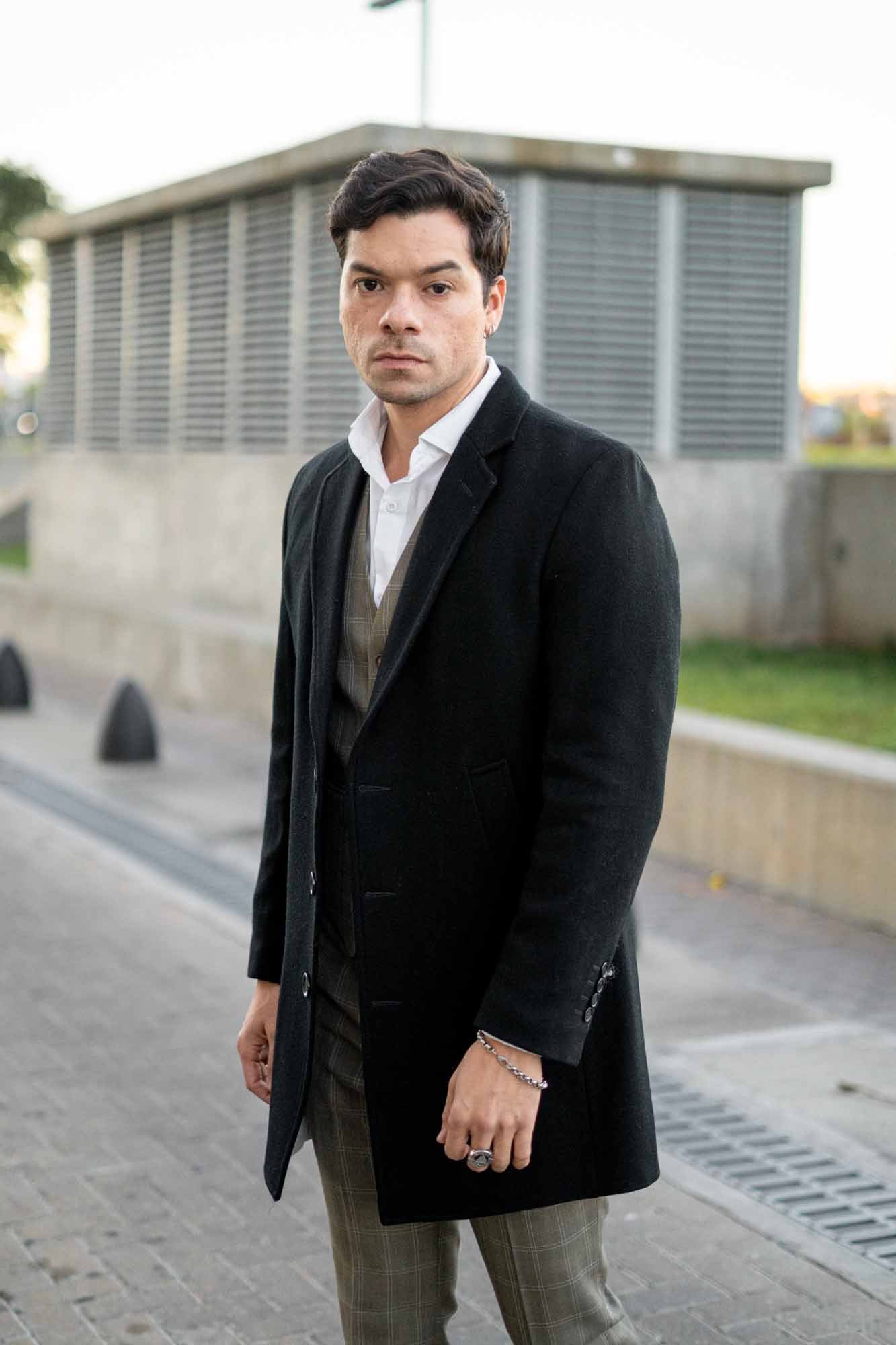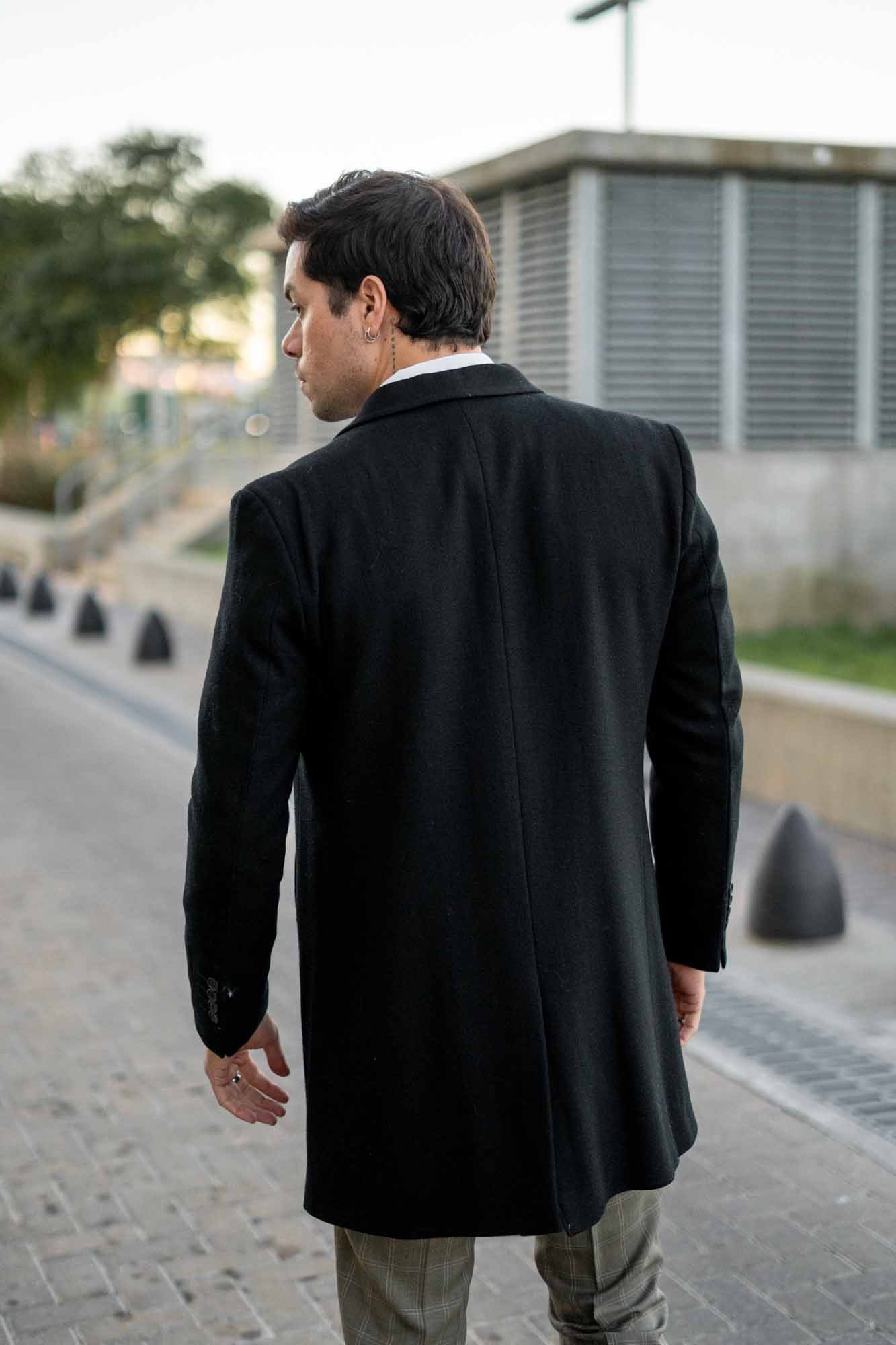 Eleva tu estilo invernal con este sofisticado tapado de vestir para hombre en negro, la prenda esencial para el caballero moderno que busca distinción y protección con máxima elegancia durante la temporada fría.