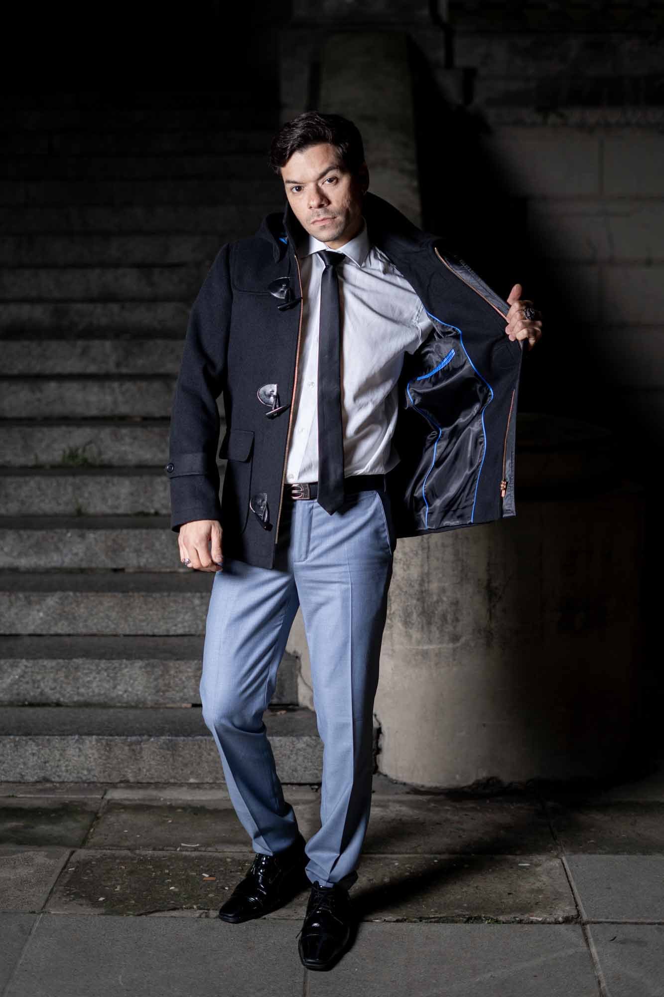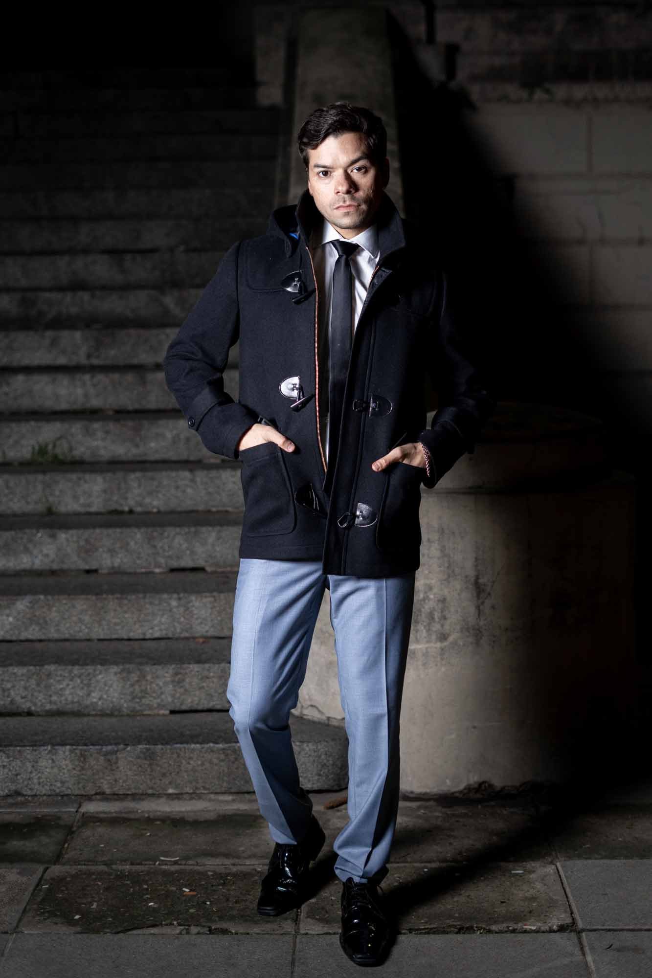 Detalles de Confección: Bolsillos laterales amplios tipo parche con solapa, hombros estructurados, cuello elevado y costuras de precisión que aseguran una silueta impecable. El diseño robusto permite llevar trajes o atuendos casuales debajo con total comodidad.