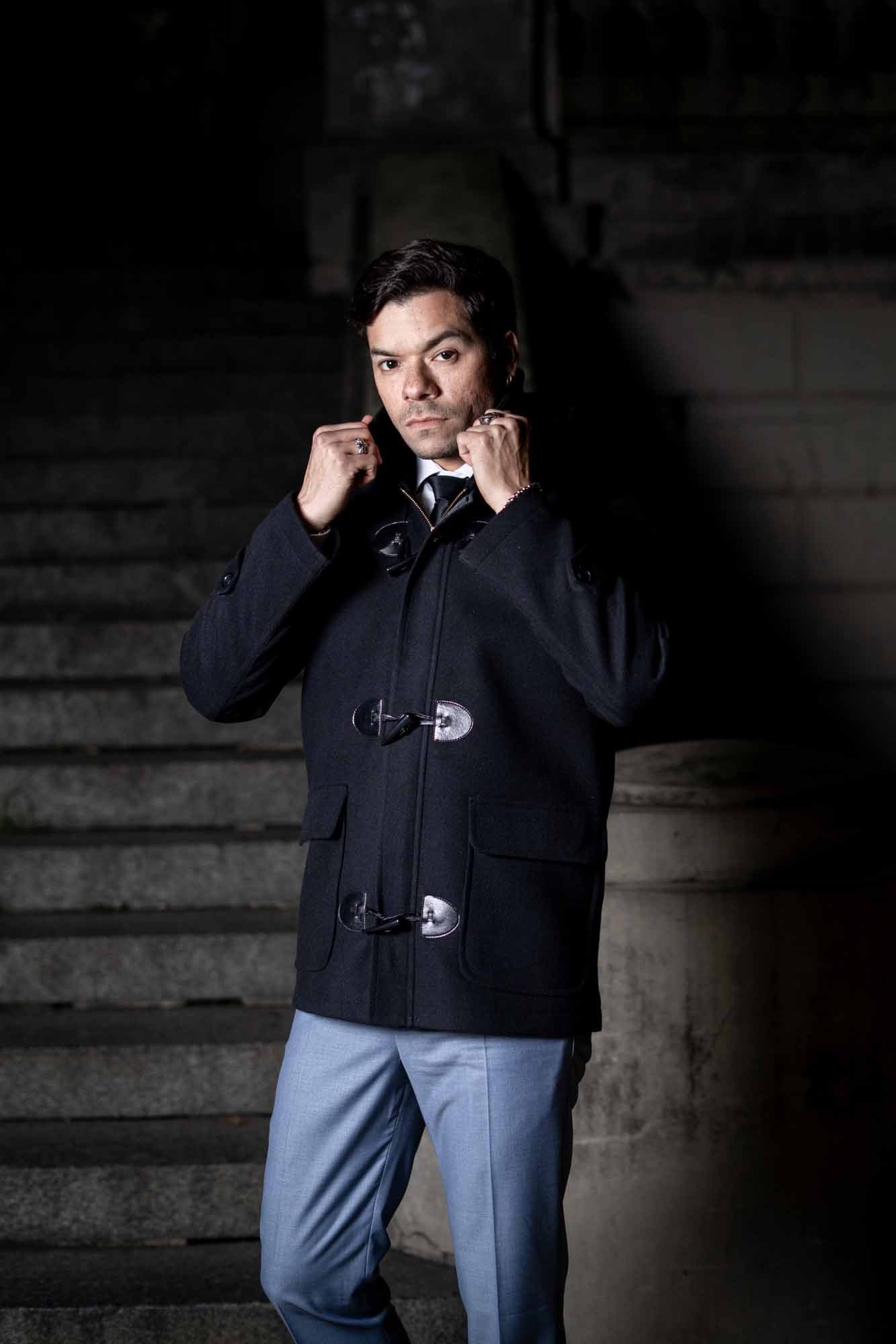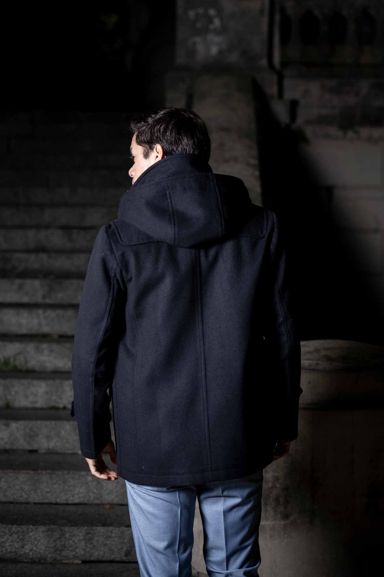 Calidad Premium: Confeccionado en paño de alta calidad, reconocido por su calidez excepcional, resistencia y caída impecable. Este material robusto y elegante garantiza protección contra el frío y el viento mientras mantiene una apariencia refinada y con carácter. El elegante tono negro aporta versatilidad y un estilo contemporáneo que se adapta a múltiples ocasiones.