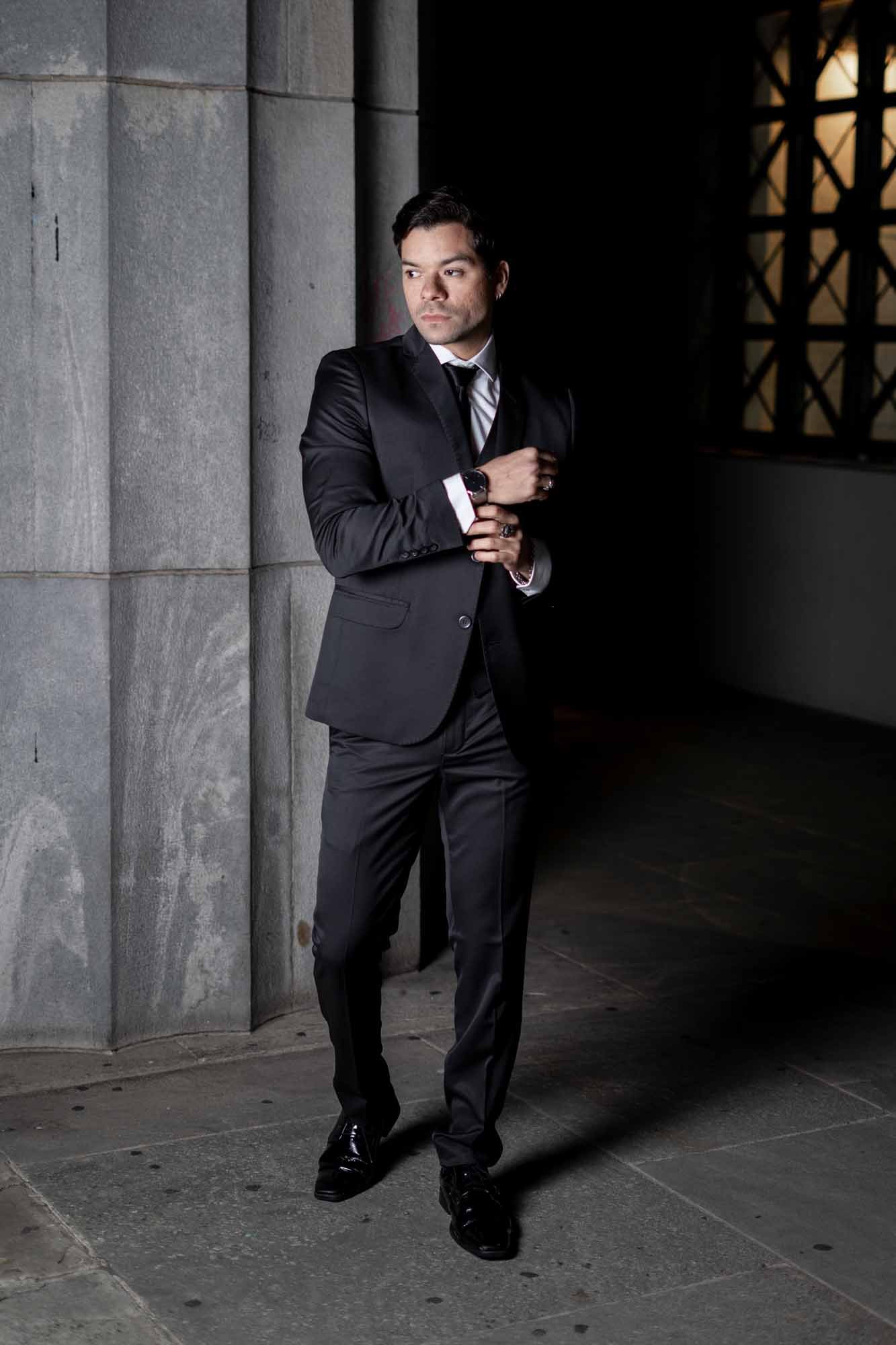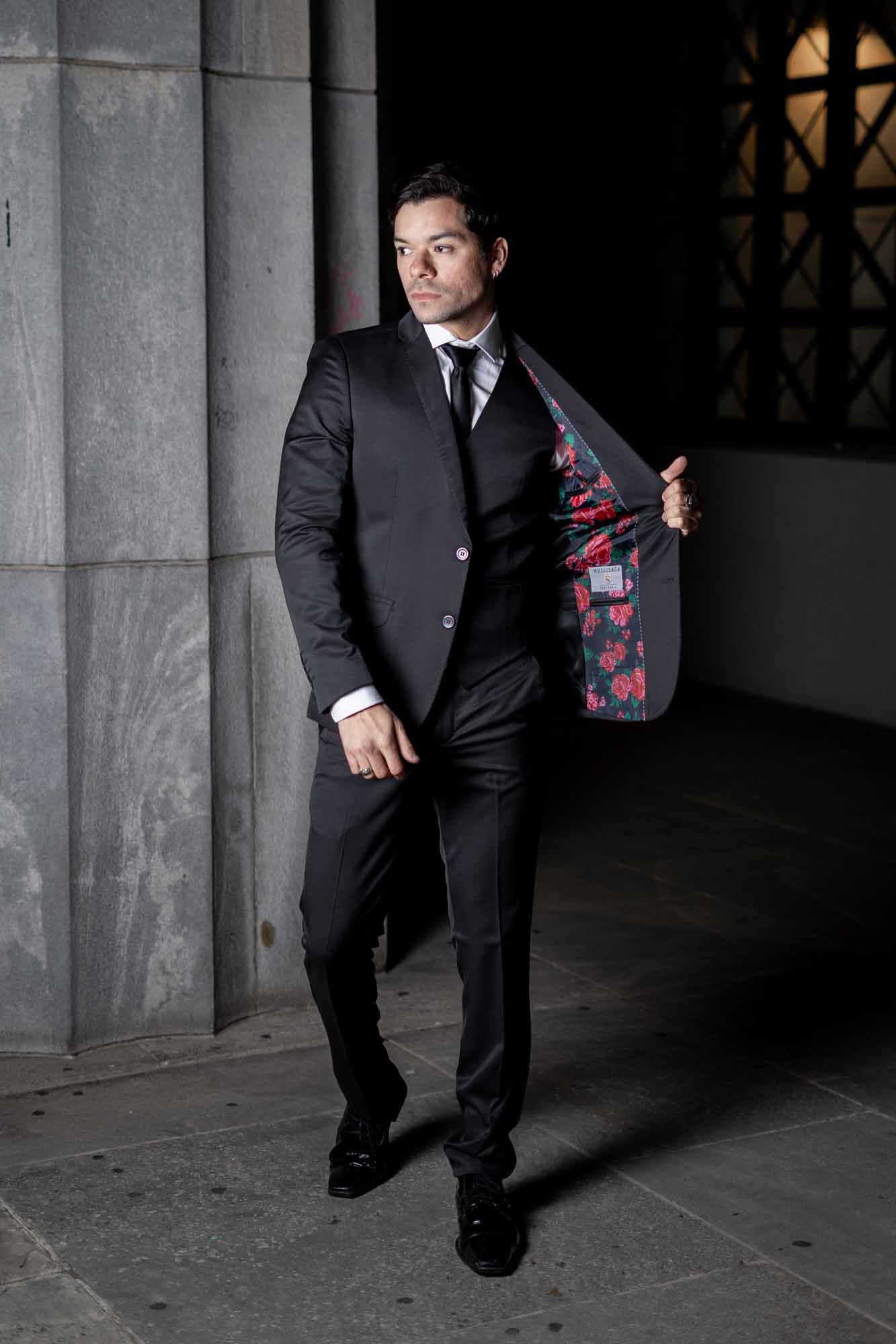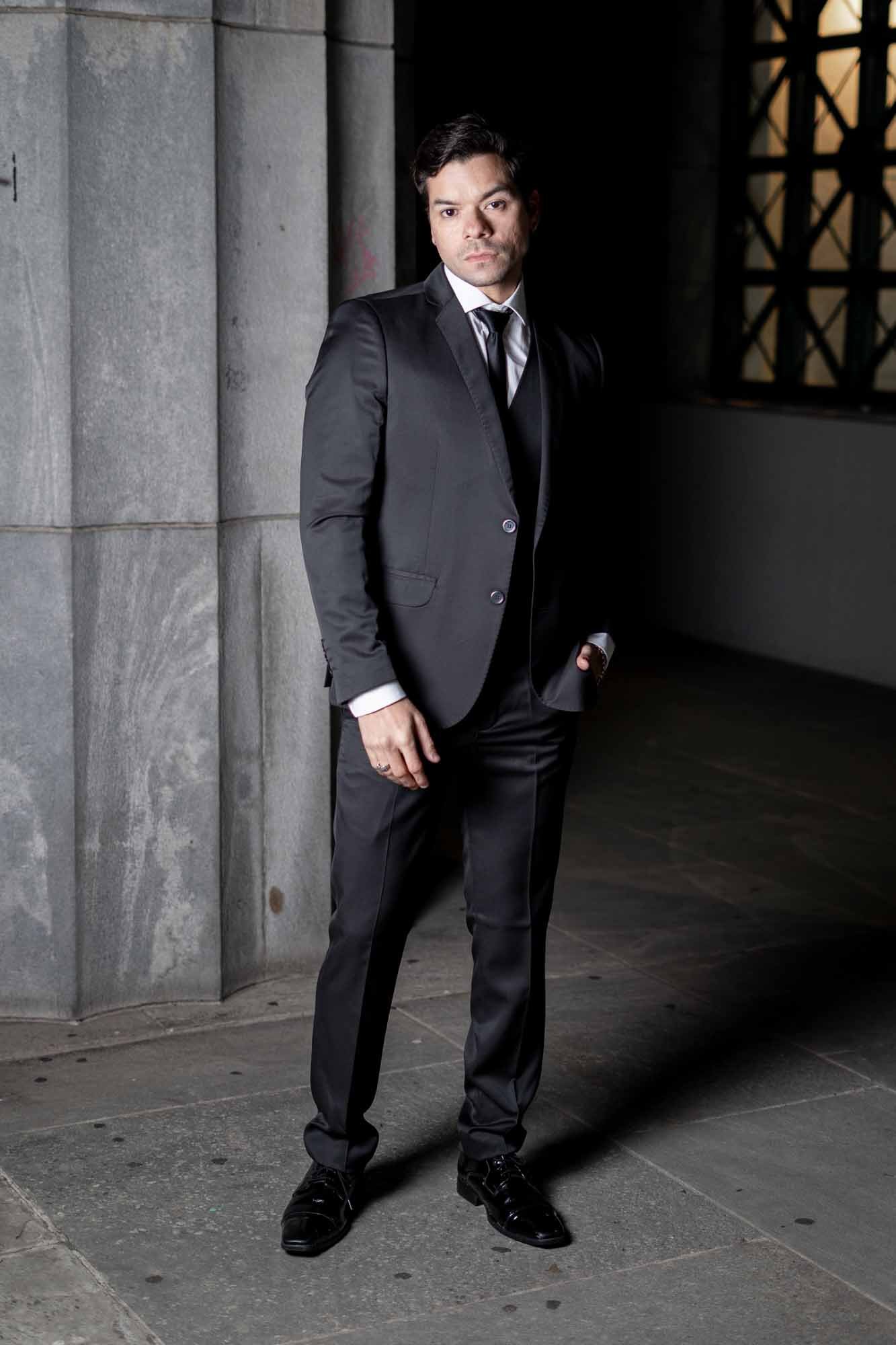 El traje viene en un negro sólido y profundo, ofreciendo una versatilidad que se adapta a cualquier ocasión formal o profesional. Ya sea para una reunión de negocios, una gala o una celebración especial, este color clásico y atemporal será siempre una apuesta segura. Además, su textura sutil y estructurada, con detalles similares a un patrón de mini diamantes o tejido de canasta, añade profundidad visual y un toque de originalidad. Este atributo único lo diferencia de los trajes convencionales, aportando elegancia sin resultar ostentoso.